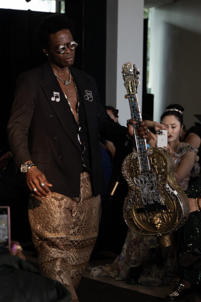 Our designs transcend trends – they are statements of power and purpose. Whether it’s a queen-like figure commanding the runway in golden regalia, a musician wielding a one-of-a-kind instrument as wearable art, or a model striking with elegance and flair, each piece tells a story. We fuse culture, bold innovation, and artistic vision to create fashion moments that spark conversations and transform the runway into a stage of cultural celebration and personal empowerment.